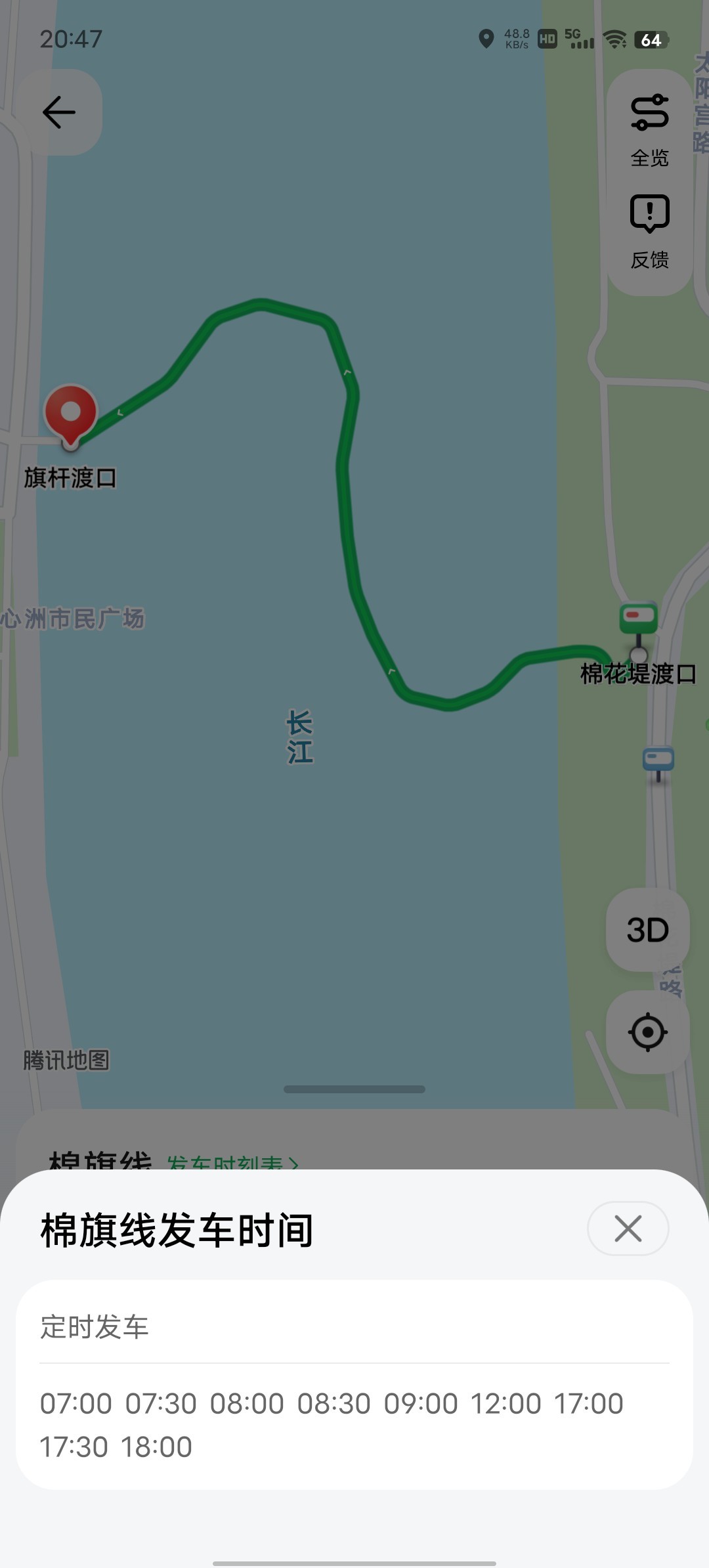 7.棉花堤往返江心洲旗杆渡口时刻表如下: