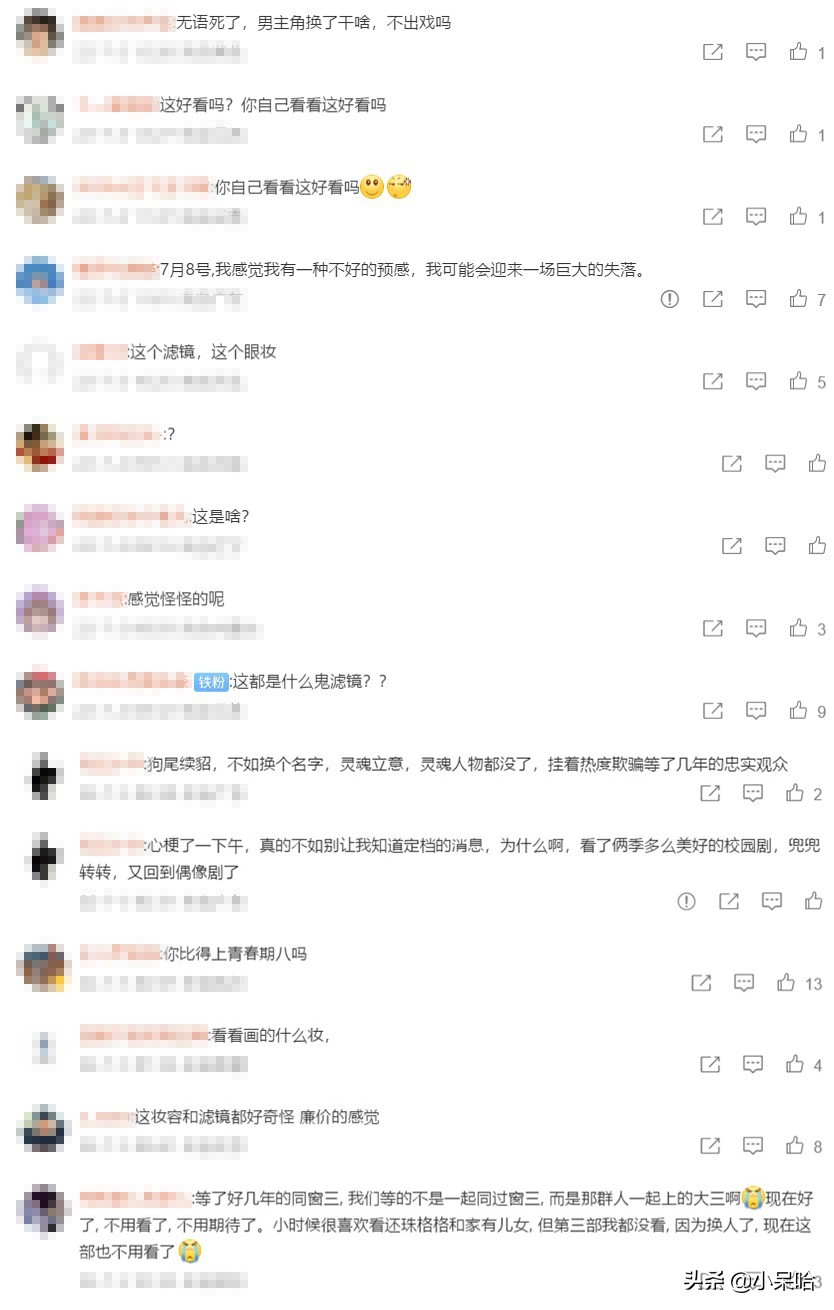 网友们广泛热议的一点,就是第三季的滤清和妆容比较怪异。说实话,1分多钟的预告片看完,发现男演员们基本都和5年前相比变化不大,女演员或许是妆造原因?略显老态,精气神不贴脸了,不太像大学生。