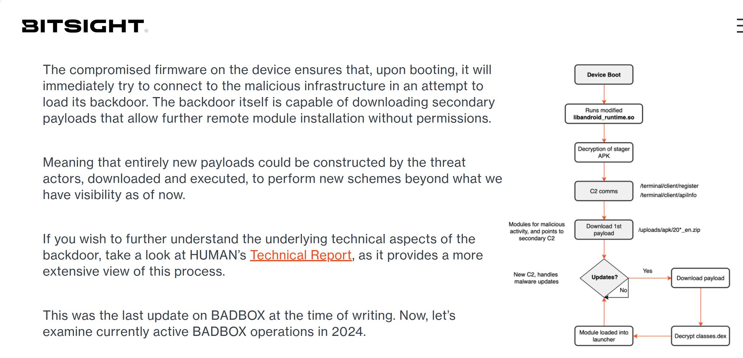 BadBox僵尸网络并非首次出现,它基于Triada恶意软件家族,通过供应链攻击、内部人员恶意操作或产品分销阶段的注入等多种方式,悄无声息地潜入用户的安卓设备中。2023年初,这种恶意网络首次在亚马逊销售的T95 Android电视盒上被发现,随后很快蔓延至到其他多个品牌和型号的在线销售产品。