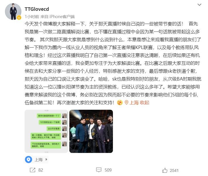 KPL春季赛常规赛马上就要开始第二阶段了,各支队伍都已经整装待发。在第一阶段的时候广州TTG的成绩起伏不定,主教练笑风对于这支队伍的掌控度还是差了一点,很多观众都在期待LoveCD回归,不过LoveCD回来之后并没有参与赛训,而是在二路开始了直播,在第一次直播的时候就说了很多猛料,也造成了不小的影响,最近他也公开给estar的主教练SK道歉,希望大家不要过分解读。