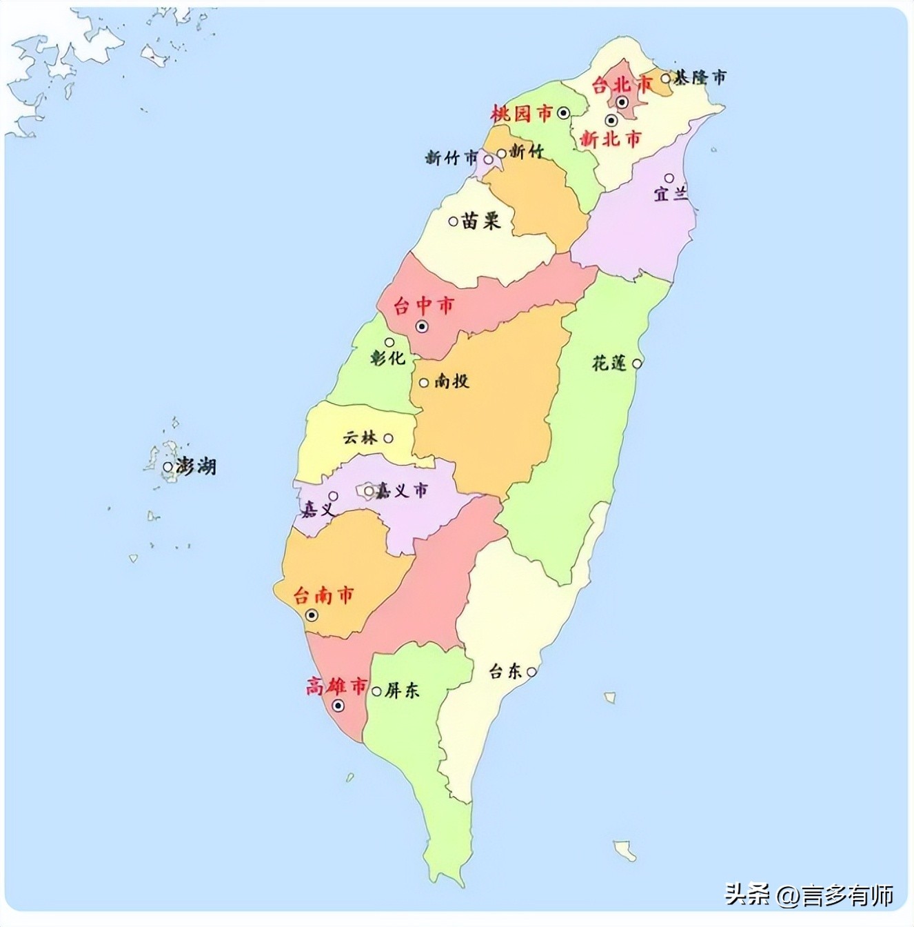 其中8县分别为:台北、新竹、台中、台南、高雄五大县以及台东、花莲、澎湖三小县。9个省辖市分别为:台北、基隆、新竹、台中、彰化、嘉义、台南、高雄、屏东。2县辖市分别为宜兰、花莲。