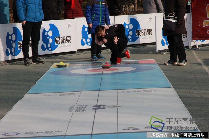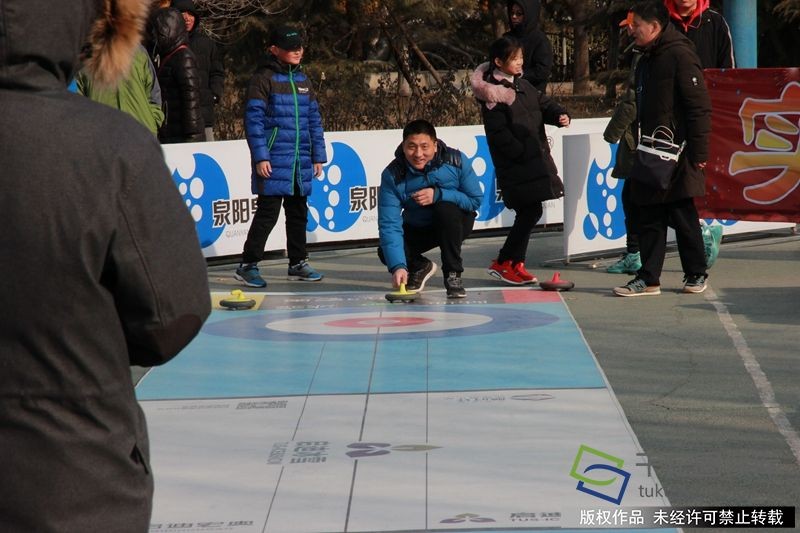 2019年2月5日至9日,第二届新春体育庙会在北京国际雕塑公园举行。本届庙会设有有冰壶球、冰车、雪地摩托、滑雪等冰雪运动项目。图为2月8日,游客进行冰壶球比赛。千龙网记者孙迟摄