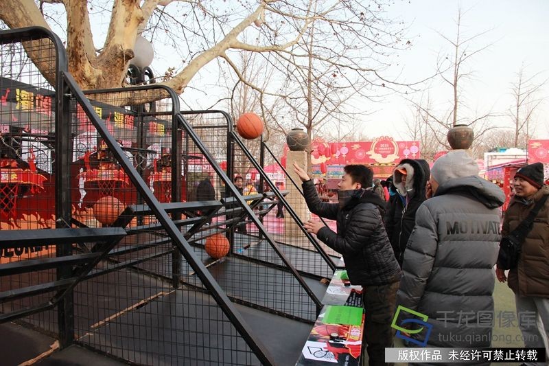 2019年2月5日至9日,第二届新春体育庙会在北京国际雕塑公园举行。本届庙会设有有冰壶球、冰车、雪地摩托、滑雪等冰雪运动项目。图为2月8日,游客参与投篮闯关游艺活动。千龙网记者孙迟摄