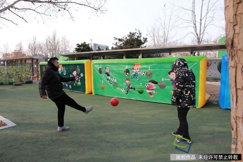 2019年2月5日至9日,第二届新春体育庙会在北京国际雕塑公园举行。本届庙会设有有冰壶球、冰车、雪地摩托、滑雪等冰雪运动项目。图为2月8日,游客参与射门闯关游戏活动。千龙网记者孙迟摄