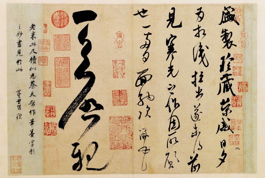 米芾的这票篇《论书帖》属于随笔而写的手札,帖中内容讲了米芾本人对于草书学习的看法,还有米芾对几个以写草书为主的名家的评论。