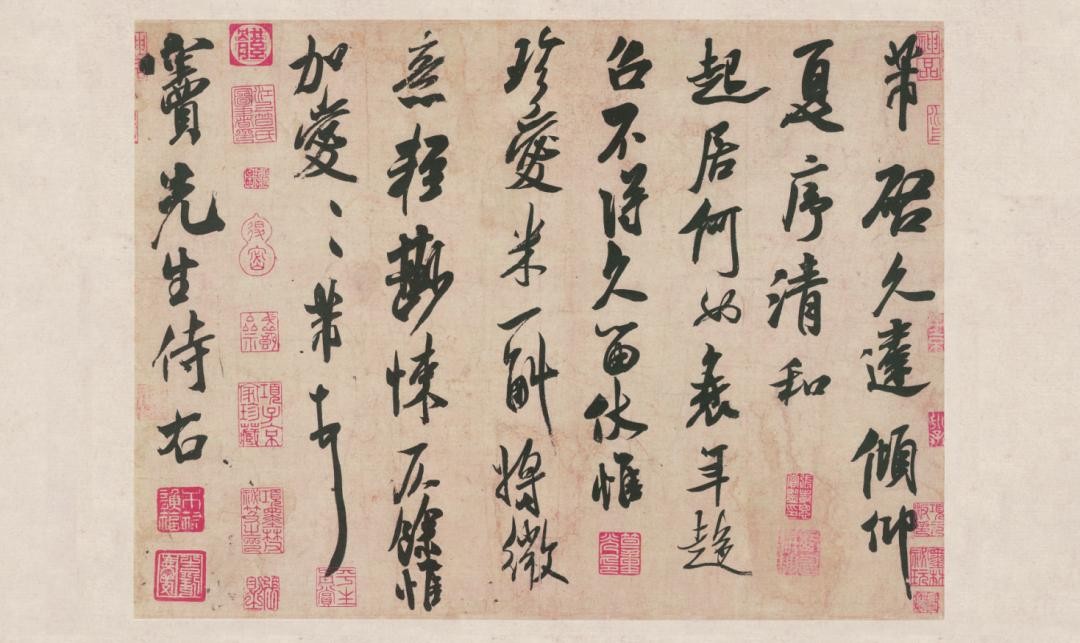 米芾《清和帖》,亦称《致窦先生尺牍》。此帖曾经项子京、笪重光等人收藏。“清和帖”是米芾的精品之一,写的潇洒超逸,不激不励,用笔比较含蓄,与其它帖比较,温和了许多,但笔划的轻重时有对比,字的造型欹侧变化,又使此帖平添了几分俊迈之气。