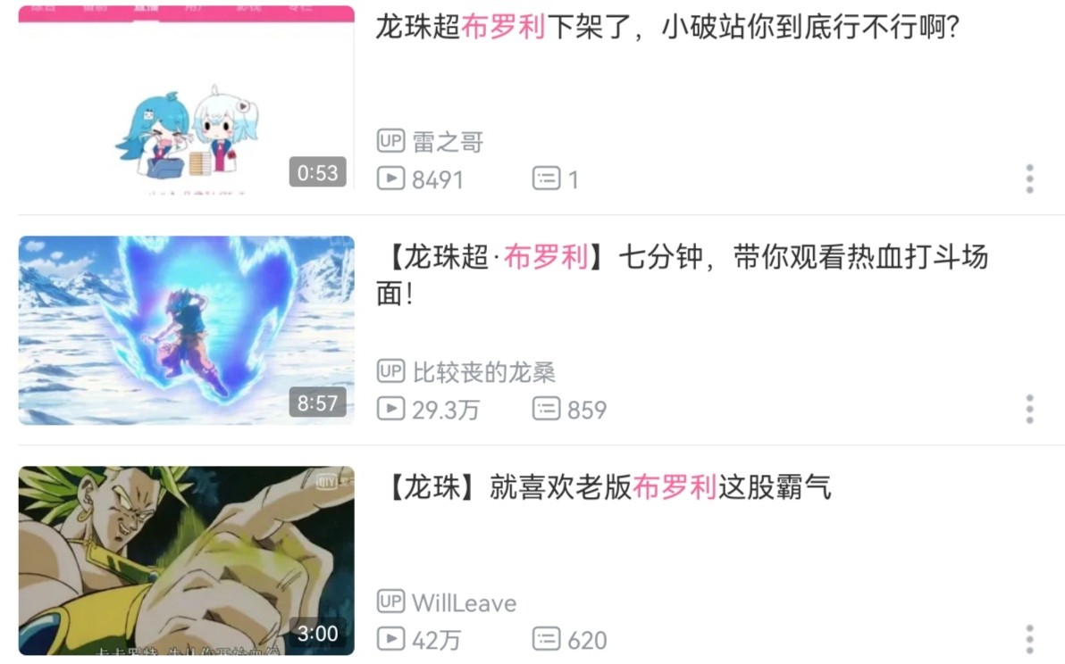 有超强打戏的日漫电影《龙珠超布罗利》,也迎来和《白蛇缘起》一样的命运。在某站搜《龙珠超布罗利》就会发现第一个视频,就在吐槽某站把《龙珠超布罗利》下架,它的发布时间是3月2号。换言之在三月初的时候,某站把一批动画电影下架了,各位小伙伴们可以去查一下自己喜欢的动画电影,到底还在不在,《游戏人生零》好像也搜不到了。