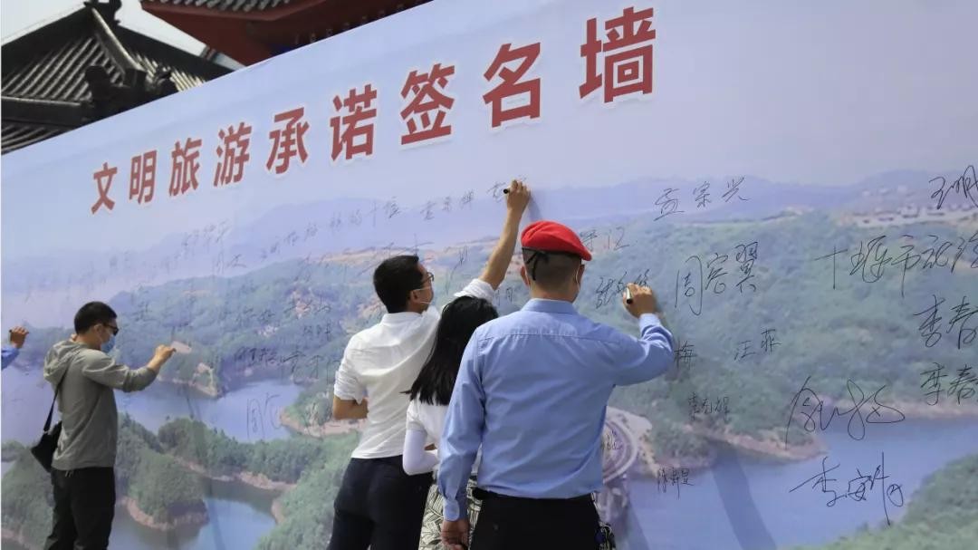 线下组织文明旅游系列主题活动,活动现场不仅宣读了文明旅游倡议书,倡导游客文明旅游、景区文明迎客外,市文旅局还发布了十堰十条最美自驾旅游线路,同时将启动“惠游十堰”消费惠民活动第二轮旅游消费券发放,诚邀各地游客前来游玩。