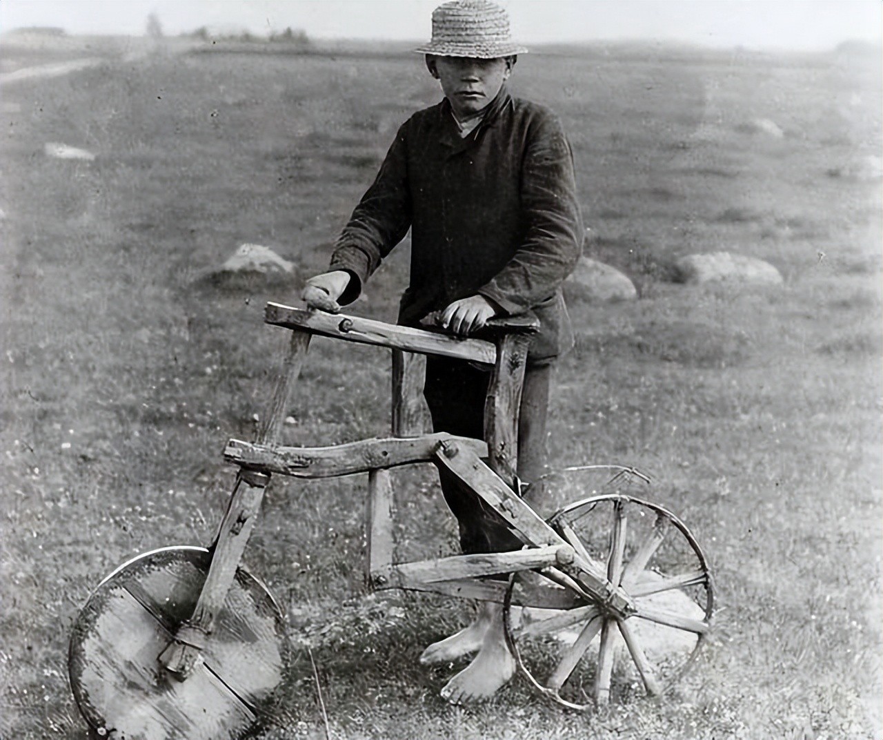 二三、1912年,来自爱沙尼亚的自行车手,骑着自制自行车。