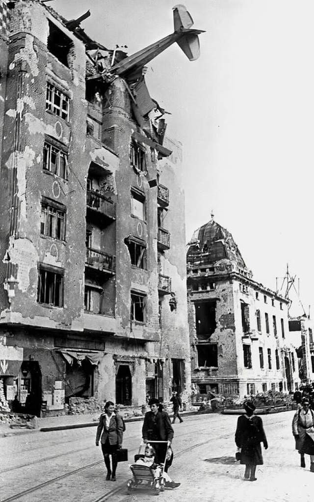 六、1945年,布达佩斯被围困期间,一架飞机不幸撞上了公寓楼,造成了巨大的损失。