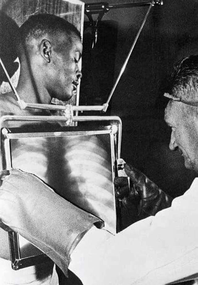 三、1954年,南非钻石矿工在下班前接受X光检查。