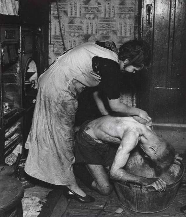 二六、1937年,英格兰切斯特勒街的煤矿工人澡堂,由比尔·布兰特拍摄,记录了工人的艰辛生活。