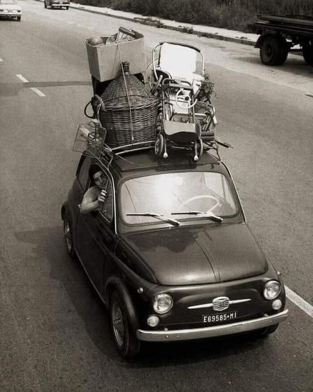 十三、1967年,意大利的一个家庭开着菲亚特500去度假。