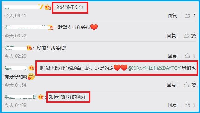 看到这样的消息后,有小飞侠说,“突然就好安心”。也有网友表示:他说过会好好照顾自己的,这是约定。 我们也有好好的呀。