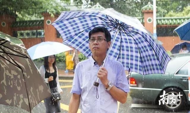 △祈盼--高考时分,大雨滂沱,一位父亲在考场外等待孩子。祈盼而又稍显焦急的表情让人动容。