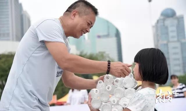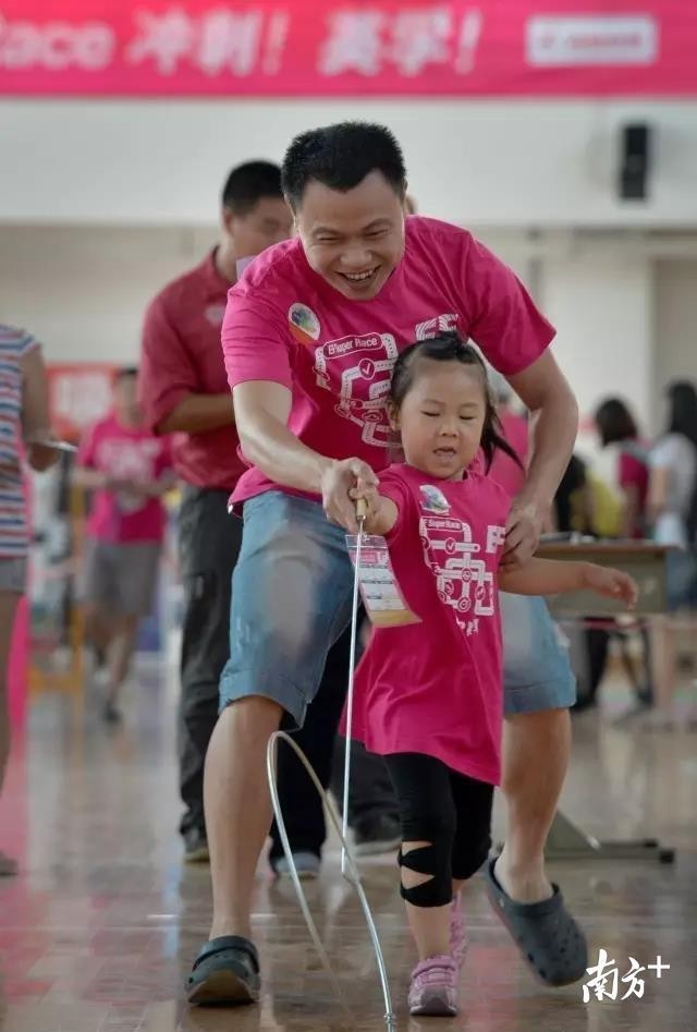 △开心--一位爸爸正在用手给参加活动的女儿擦汗。和子女在一起的时候,或许是父亲们最纯粹的开心的时候。