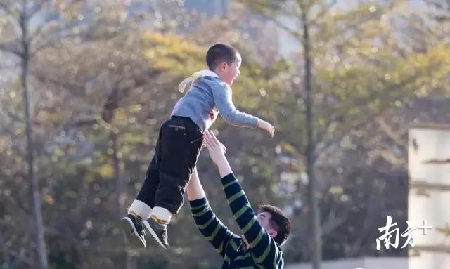 公园内,一位父亲把孩子高高抛起。孩子笑得十分开心。不知道屏幕前的你是否看到了自己的影子呢?