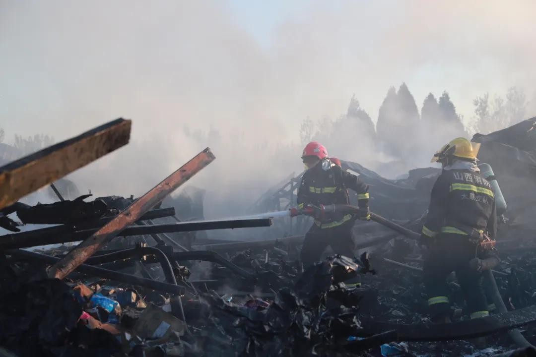 山西太原:东坪村一日化品仓库发生火灾 消防指战员彻夜扑救