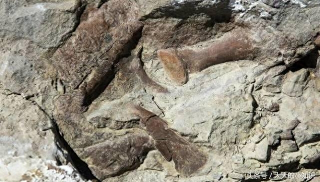 在大阶梯状国家纪念碑保护区发现的霸王龙骨骼化石残骸上的趾骨、上颌和鼻部。这具骨架是美国西南部发现的最完整的骨骼化石。(上图)
