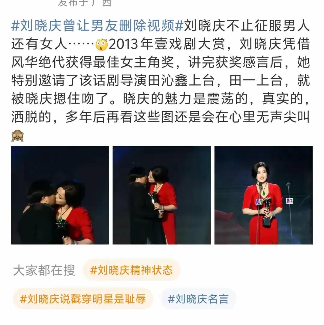 这事儿还没完呢!网友们还扒出了刘晓庆过去的一些“大胆”举动。比如在某个颁奖典礼上,刘晓庆就直接亲了导演!这事儿在当时也是引起了很大的轰动。