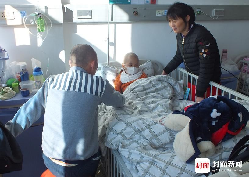 两年多没见面的一家三口,在龙龙的病房相聚,一家人泣不成声。