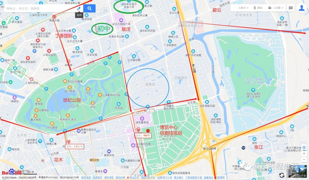 公园及休闲:世纪公园、汤臣高尔夫球场