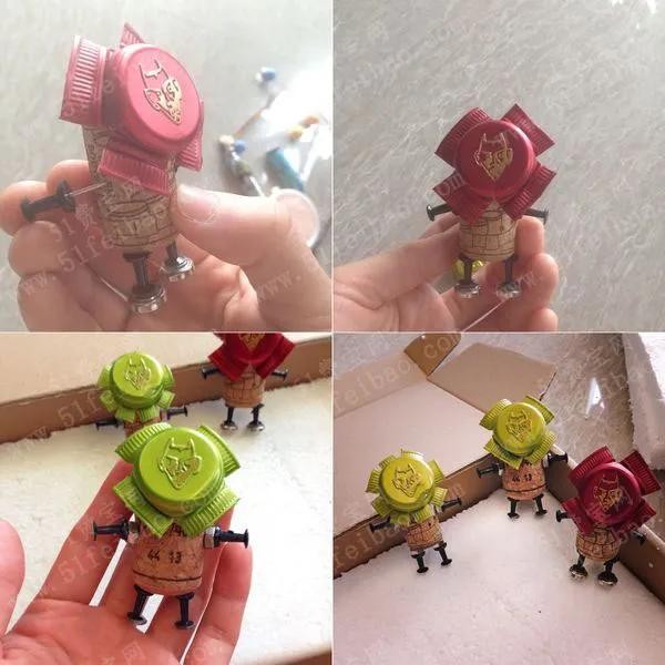 啤酒盖玩具。这也是我们自己动手制作的。我用砖头把酒瓶盖拍平,然后钻俩眼,穿上线,就可以一拉一拉瓶盖就旋转起来了。