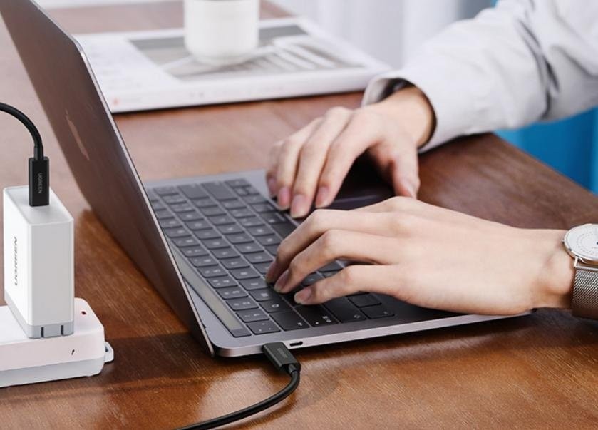 雷电3可以为笔记本、手机、平板等设备快速充电,供电能力可高达100W,而且支持双向快充。搭配绿联雷电3数据线,2小时即可充满MacBook Pro 2019,这可以让笔记本摆脱庞大笨重的电源适配器,便捷性大大提升。