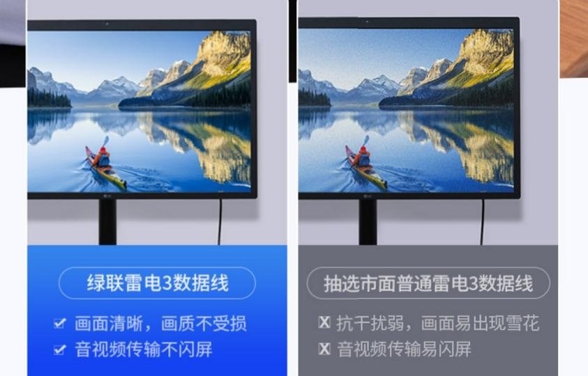 绿联雷电3数据线支持5120*2880分辨率,能高清还原视频画面,画面清晰音质无损,可让用户享受到更震撼的大屏体验。