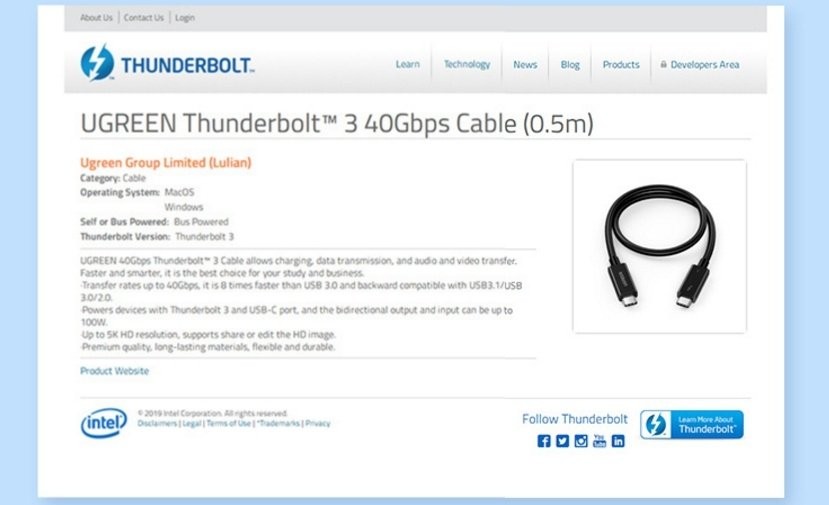 需要提醒的是,在购买雷电3数据线时一定要认准英特尔认证,它是英特尔公司对该配件符合其技术的认可和使用许可的标志。
