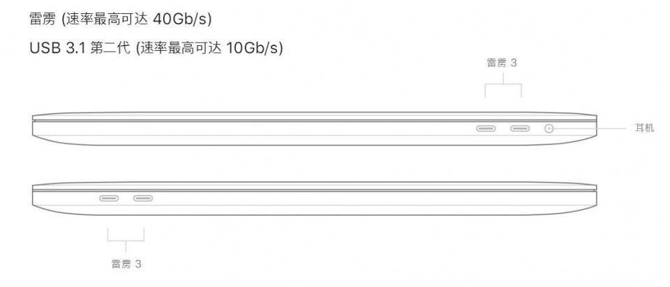 众所周知,苹果自2016款MacBook Pro开始,便一锤子将所有笔记本产品的接口统一改为雷电3接口,苹果称其为雷雳3。苹果新上市的Macbook Pro 16则用上了四个雷电3接口。