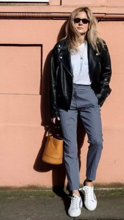 /// 黑色皮夹克+运动鞋