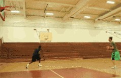 转体接球投篮:接球时下半身左右来回小跳做转体运动,随后接球时立即投篮,可以模拟实战接球的场景