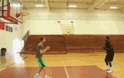 接球假动作投篮:与上面动作类似,区别只是跑到三分线接球后,先做一个假动作投篮,然后再迅速下球急停跳投