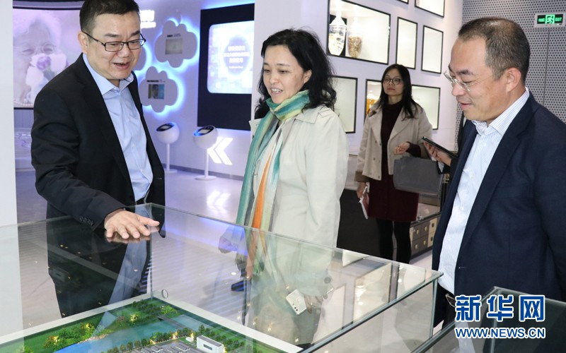 广东省旅游局党组书记、局长曾颖如(左二)参观康美药业企业展示厅。新华网发