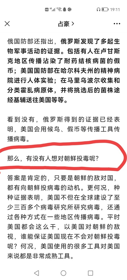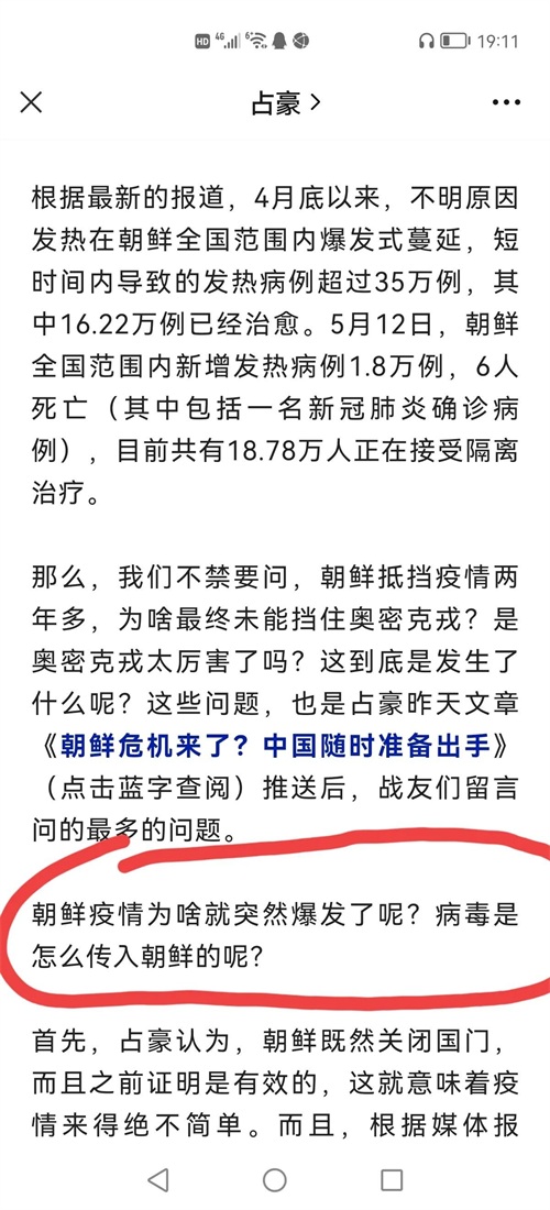 一看标题就知道占豪又发现朝鲜为何大面积爆发“新冠”