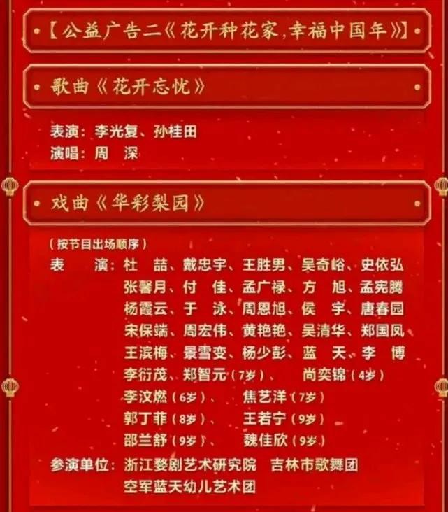 整个节目单看下来,内容还是挺丰富的。就是感觉语言类节目有点少,老一代的小品演员已经全部退出历史舞台。对于这个节目单,你有什么想说的吗?你最期待的是哪个节目?