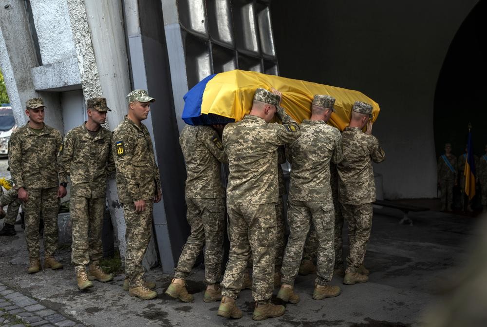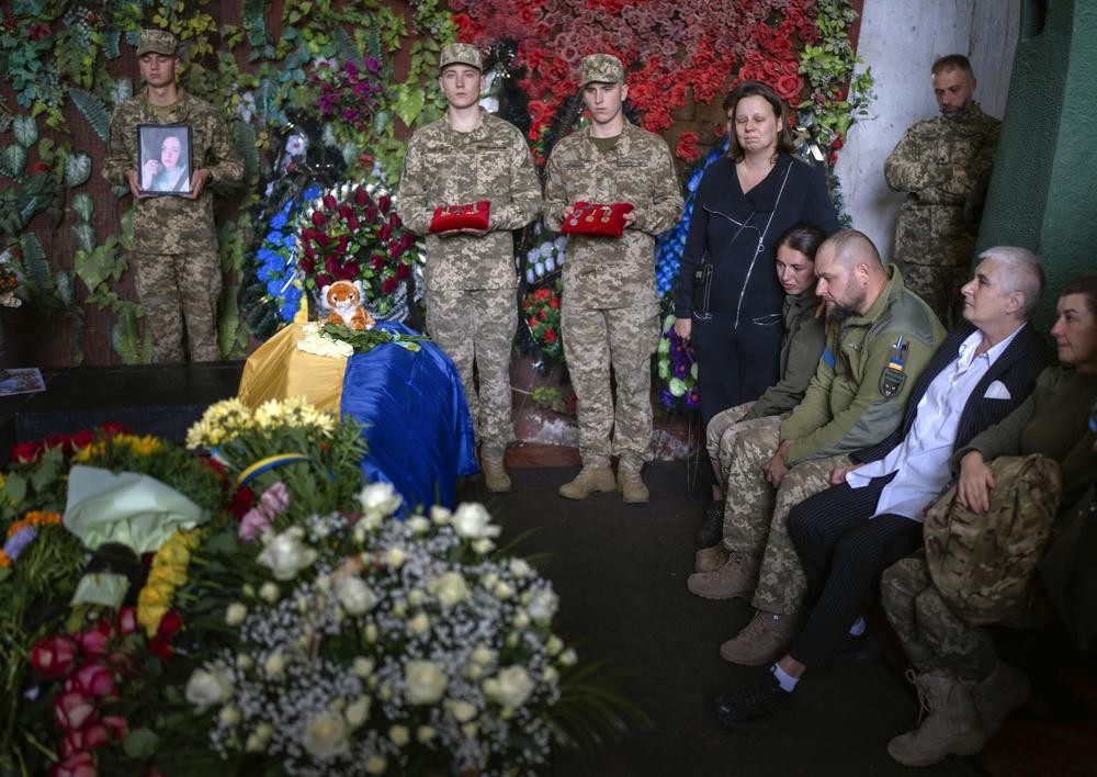 在乌克兰首都基辅,仪仗队向布满阴云的天空发射了3枚礼炮,用以向为乌克兰作战而牺牲的俄罗斯妇女致敬。乌克兰士兵认为,她是乌克兰战士亲密的朋友和战友。
