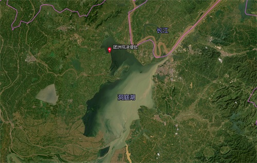 下面是决堤处在整个洞庭湖的位置: