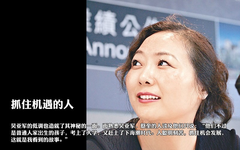吴亚军付给了蔡奎高达200亿港币的分手费,并代持了蔡奎所有的股份。