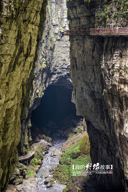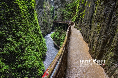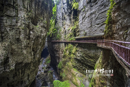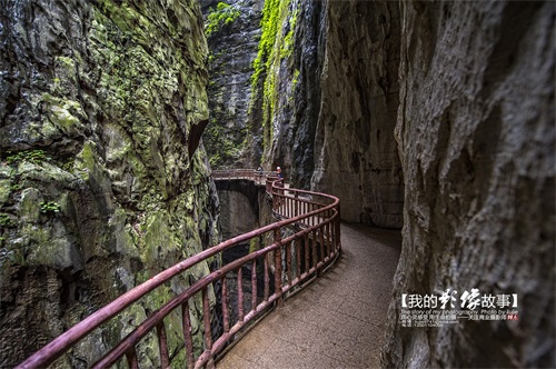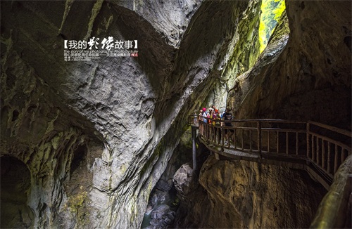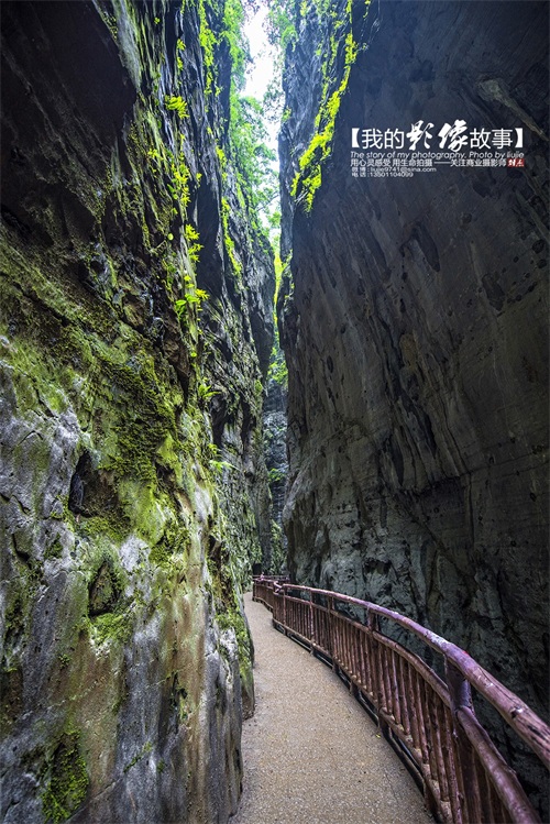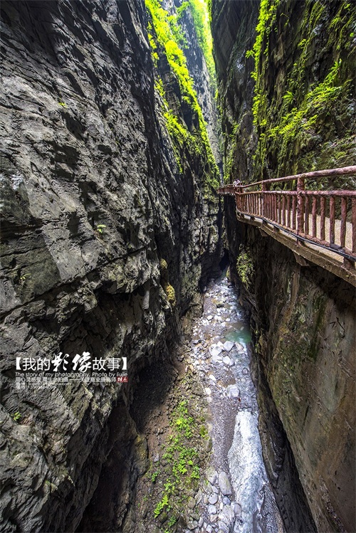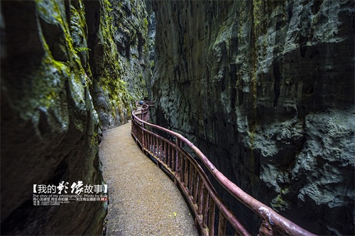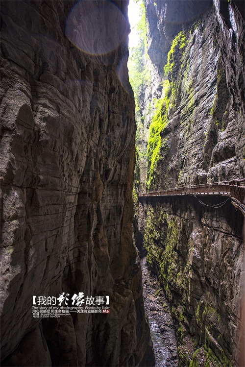 要说这武陵山大裂谷之景,本人觉得最为招牌、奇绝的,莫过于“青天峡地缝”。在这里有绝壁栈道,它位于景区峡谷下段,全长1500米长,峡谷宽度2到5米,峡谷两边悬崖峭壁高度在200至300米,抬头仅见属于自己的那“一米阳光”。真是感叹大自然的鬼斧神工啊。