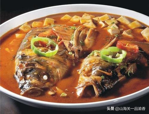 鱼头豆腐是衡阳风味。必须选择花鲢鱼头,加上一半的鱼肉,酱油,豆酱,糖,加入豆腐块,蘑菇,姜等,食之汤鲜味美,爽口宜人。