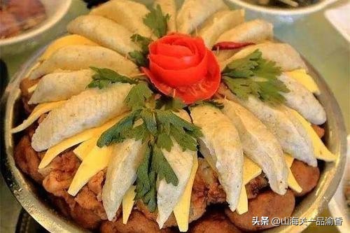 大多数北方人都没听说过堆子香腰这个菜名,更不用说吃了。香腰这道小吃的第一层是辣椒和腰花。第二层是鱼丸子,具有特殊的形状,是梭形。第三层是鸡蛋皮和肉卷由蛋皮和肉制成。第四层是黄雀肉,是大小不一的肉块。最下面一层是桂圆、红枣等一些打底的蔬菜。一般当地人都是要放在荷叶上食用的。