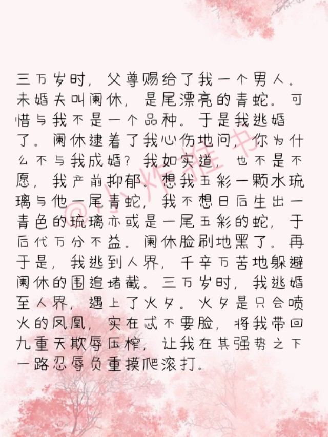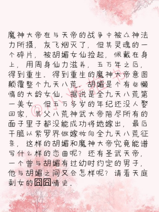 短评:这本跟香蜜真的很像,前期都是男主把女主带进天庭,然后欢脱的爱情线,但是后期虐的等级×10倍!男主是仙,女主是魔尊之女,两个人本身就站在了对立面,男主因为失忆把女主老爸kill了(别怕!还能复活),然后就追妻火葬场了!