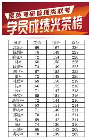 图2:聚英2016年管理类联考学员成绩(部分)