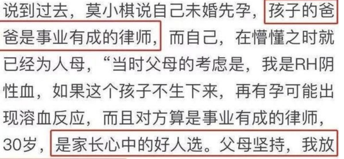 而当时得知莫小棋已经怀孕的消息,再加上对方的身份和成就,父母也坚持让莫小棋生下这一孩子,并且开始着手筹备两人的婚礼。