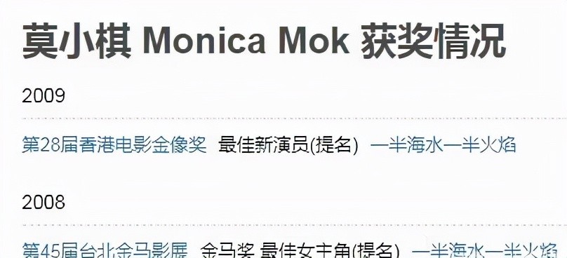 很快,在2008年莫小棋凭与演员廖凡合作的作品《一半海水一半火焰》,获得了金马奖最佳女主角的提名。