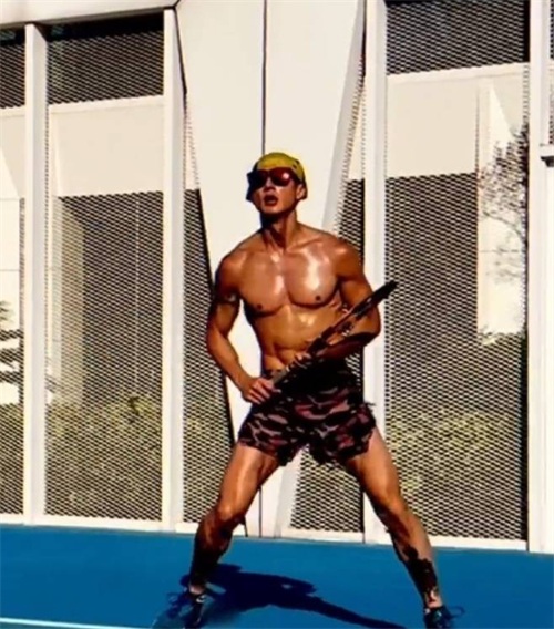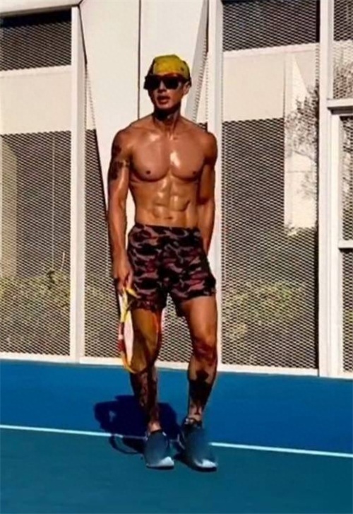 43岁吴尊裸身打网球,皮肤黝黑肌肉突出,被调侃像只油亮的蟑螂