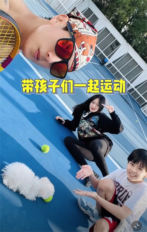 视频的最后,是吴尊分享出自己与两个孩子的合影,蓝色的球场上,吴尊恢复了往日的帅气,而女儿也是穿着健身裤躺在地上摆姿势,儿子则是满脸笑容在摸小狗,一家人和和气气,实在令人羡慕。