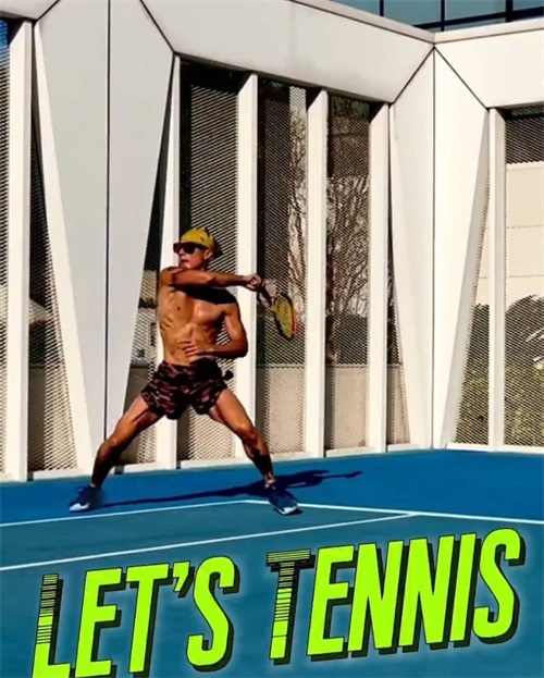 视频一开始,吴尊先是在电梯里穿着牛仔裤和白上衣,外面套了件厚实的棉衣服,在拿到网球拍的一刹那忽然变装,立刻变成了在网球场上左右奔跑的裸身运动员。